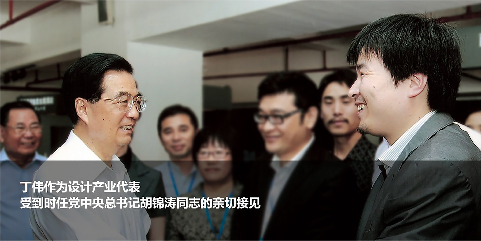 丁伟作为创意产业代表于海口受到胡锦涛总书记的亲切接见;