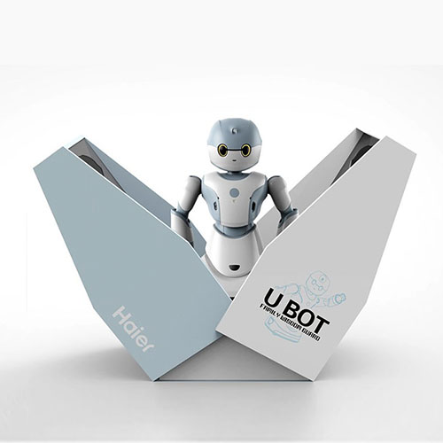 海尔智能机器人包装设计,采用开合式设计,烘托内部产品;用色清新简约呼应内部产品配色。内部贴合产品外形的设计,起到稳固产品、增加缓冲的作用。简洁醒目的标识信息,将产品信息快速传递给消费者。