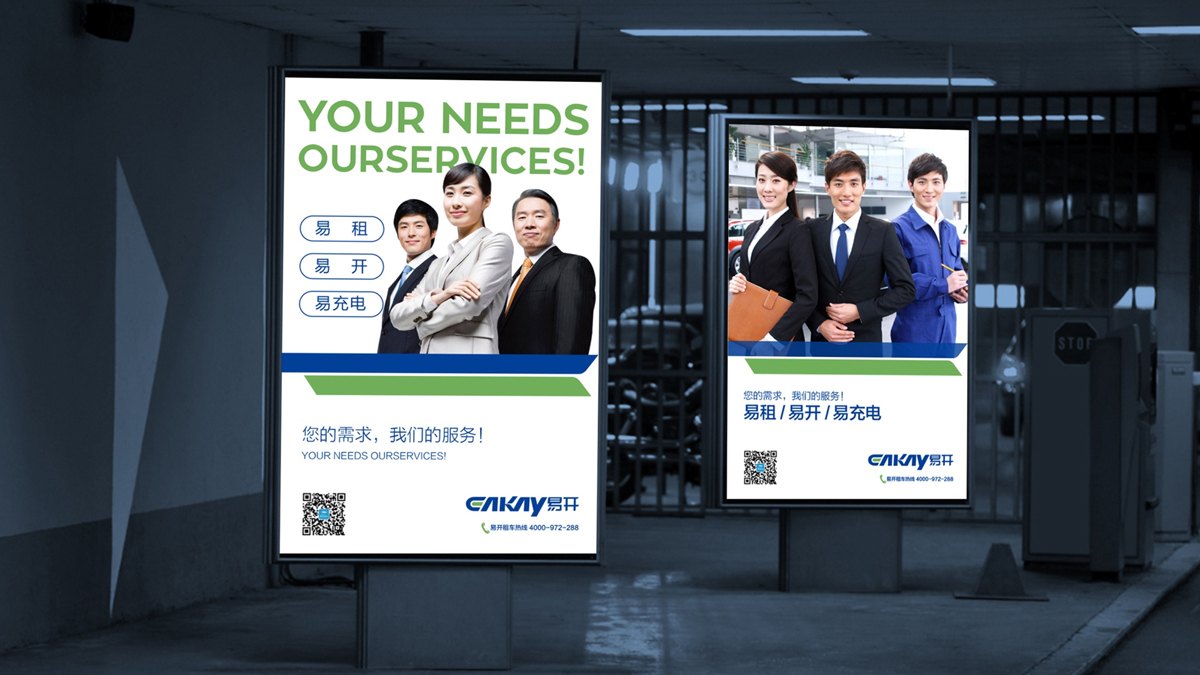 芜湖恒天易开软件科技股份有限公司(易开出行)作为中国领先的新能源汽车分时租赁运营商,此方案设计在标志设计上融合“箭头”、“飞翔”、“指引”,分别代表发展、力量和前进的品牌精神。设计师运用蓝绿色彩组合,为用户展现安全、科技、快捷的视觉品牌形象。