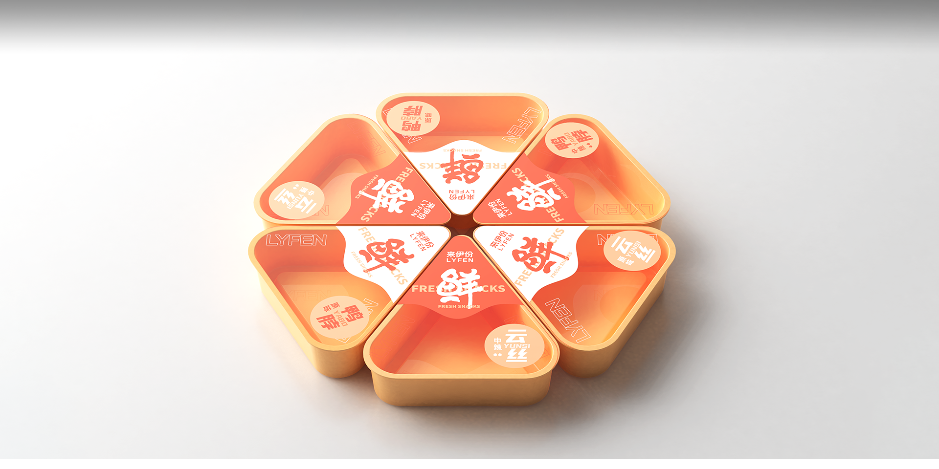 透明材质的设计令新鲜看得见。三角形外观设计,为自由组合提供了可能,为消费者提供全新实用体验。 符合聚餐时的多口味人群需求,为不同用户提供个性化需求,提升品牌服务体验感。