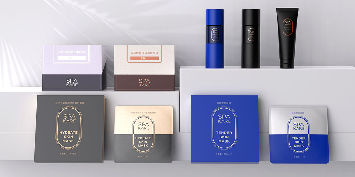 成熟稳重的配色方案,彰显品牌稳重的气质。凹凸的肌理强化产品质感,前卫的英文字母排版,紧跟时尚前沿。精华与面膜的设计贯彻一致风格,形成统一的视觉风格。