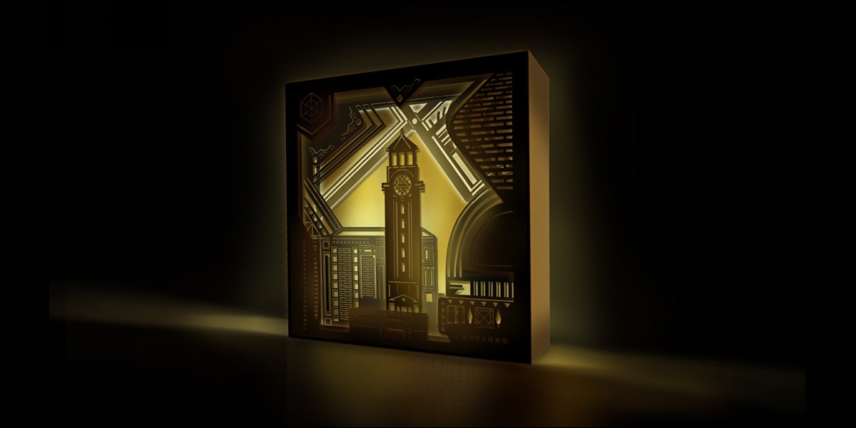 为了能够展现历博新楼的一角风貌,木马设计师在设计过程中保留跑马厅建筑线条、凝重的建筑色彩和独特的建筑风格,将整体繁复的造型进行简化,利用解析重构的手法,将跑马总会大楼分割重组以装饰画的形式呈现,配以灯光,形成美轮美奂的光影纸雕灯。