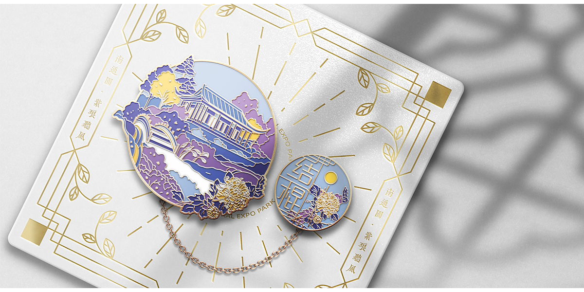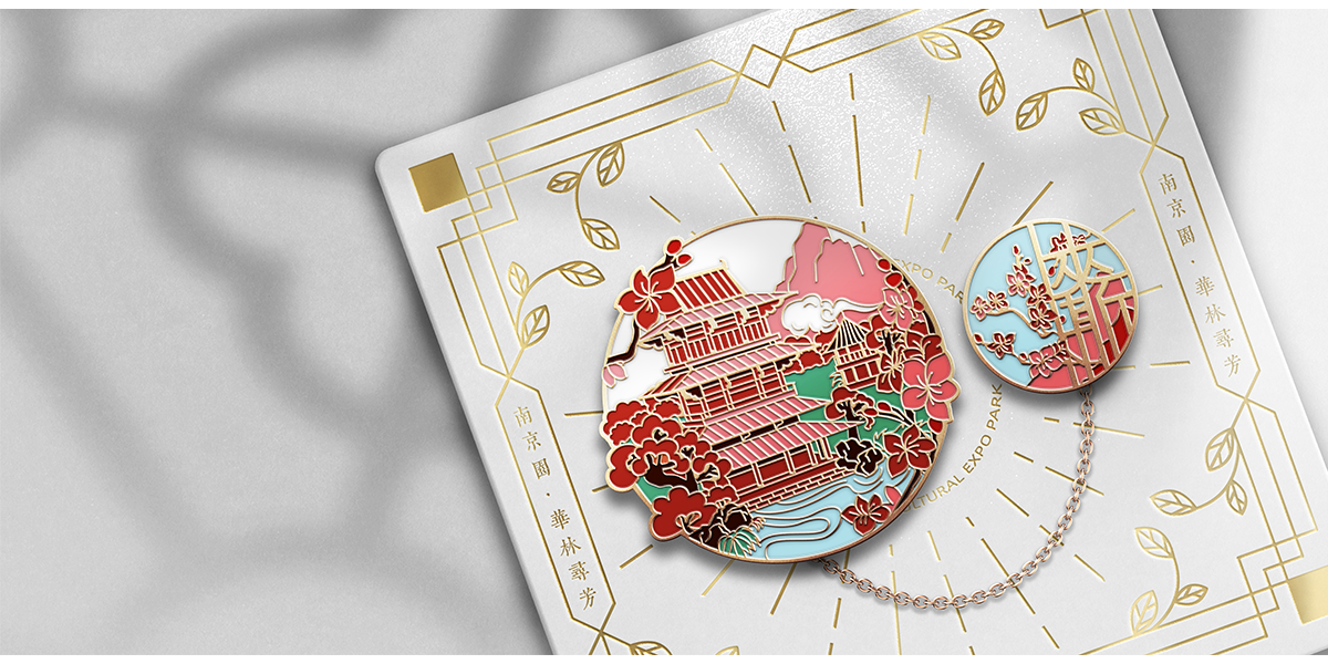 苏韵荟谷系列徽章,以传承古典文化和再现历史名园为核心主题,展现江苏十三市的传统园林特色,表达城市传统园林片段或文化记忆。设计以胸针作为载体,将文化与潮流相结合,意在展现十三座江南园林的特色风貌,如园林建筑,别样景致,抑或是地方文化。