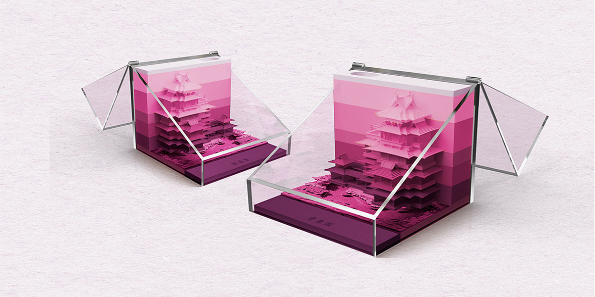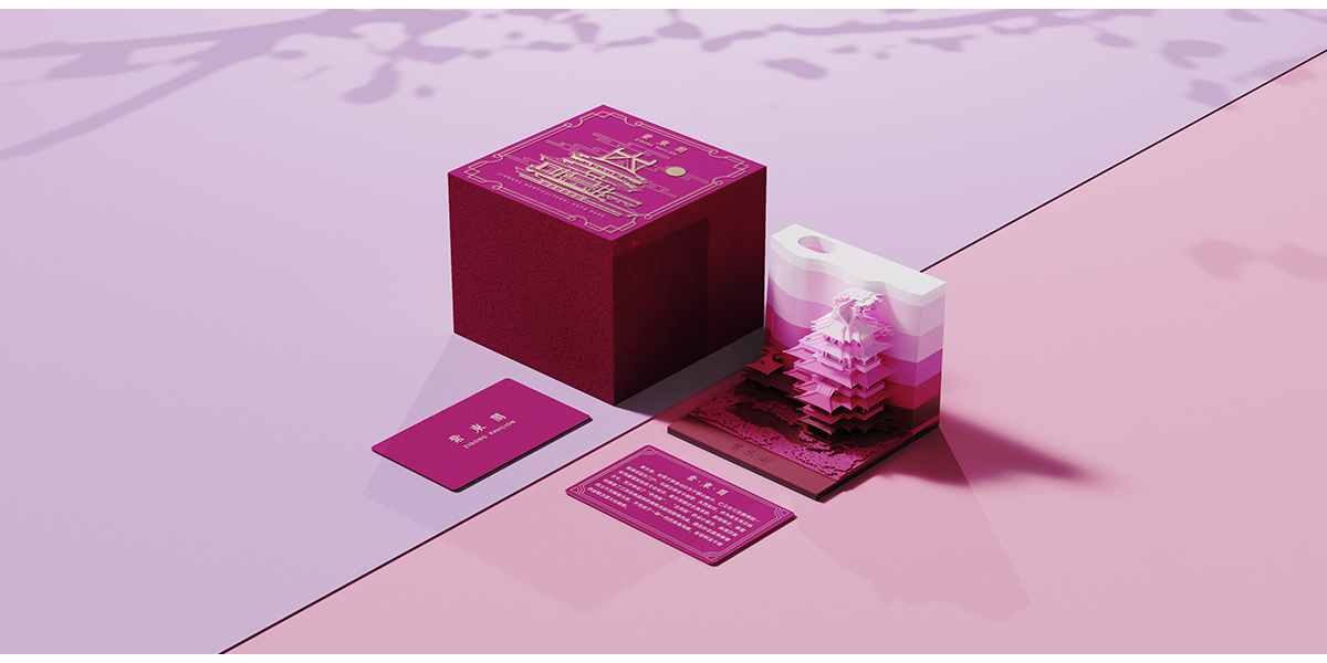 紫东阁融合古典意蕴,韵调南北、兼蓄古今,充分体现了“中而新”、“古而新”的设计理念。此次便利贴设计以紫东阁建筑为设计着眼点,将便签纸与立体纸雕相结合,以紫色渐变为主体配色,营造出较强烈的视觉氛围。同时,凸显紫东阁的历史厚重,文化积淀。