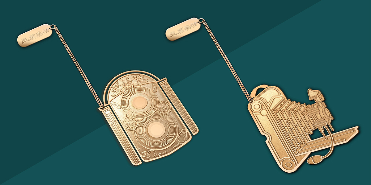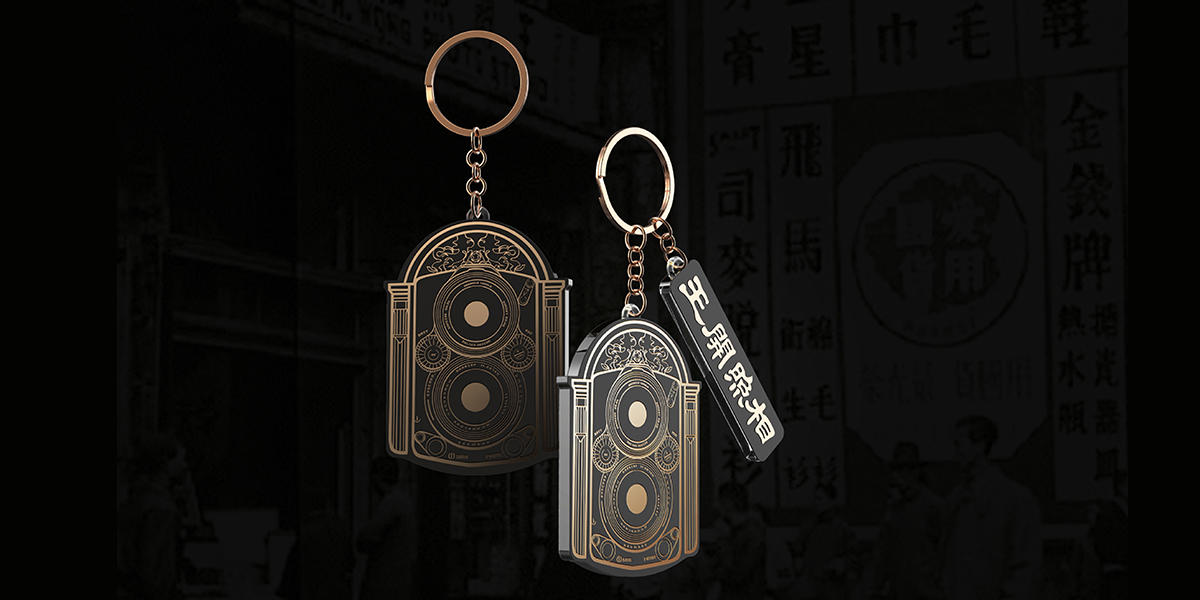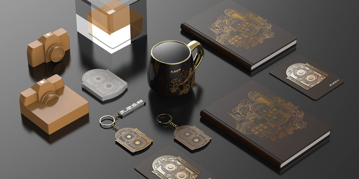 王开照相馆作为老字号品牌,其摄影器材的更替同样也见证了,上海摄影史的发展。本次设计灵感源自于上世纪经典的照相机,以重色系背景与烫金工艺营造出复古历史感,通过提炼将平面语言延伸至周边产品。