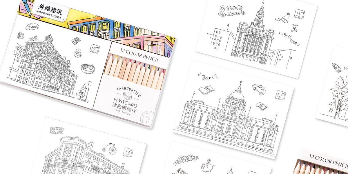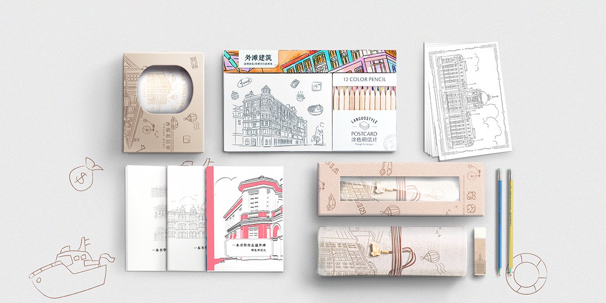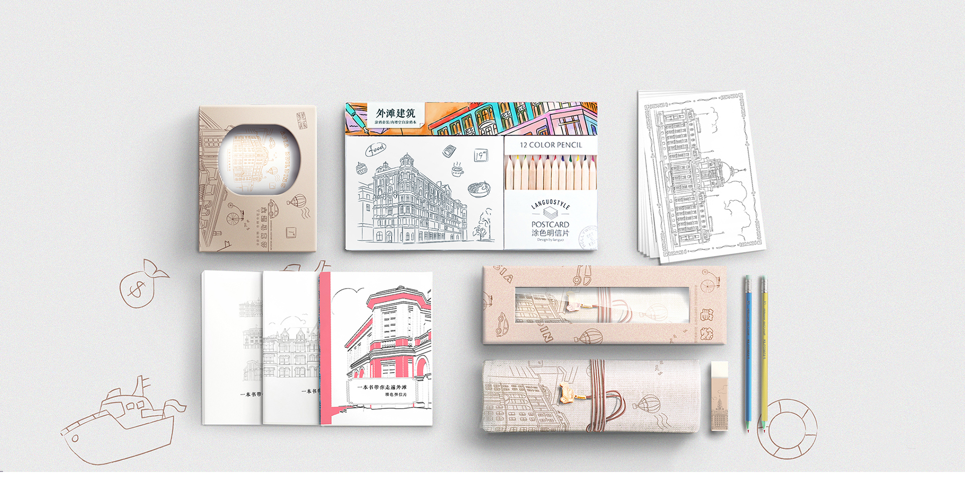 外滩建筑代表整个上海历史的发展的变迁,本方案将设计师手绘的插画图制成明信片,搭配彩铅做成了具有儿童喜欢的涂鸦套装,在整个市场销售中也产生了很好的反响。以独特的“设计+文化、文创+互联网”模式,将上海历史博物馆以全新的姿态展现在大众眼前。