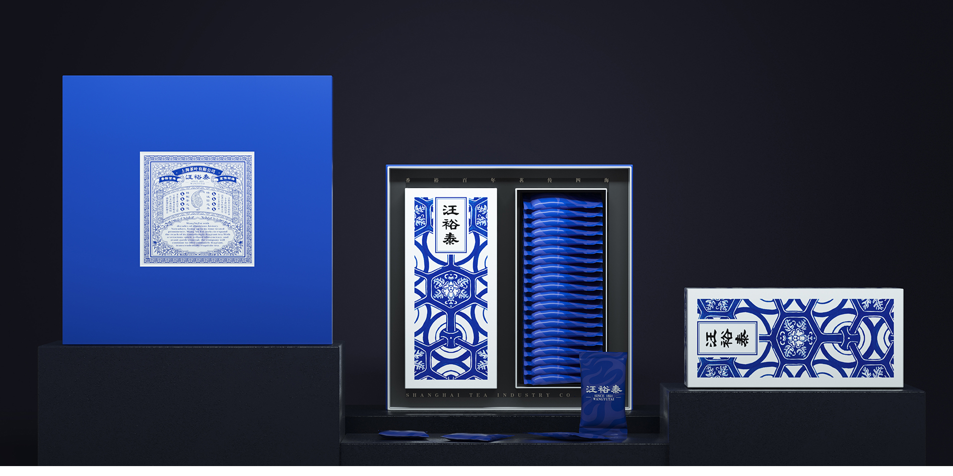 汪裕泰经典青花瓷系列包装设计灵感来源自青花瓷纹搭配瓷白,其核心价值在于品牌的百年历史+国际触角。通过溯源品牌根基、梳理品牌沿革、发展品牌新风,将高中低产品包装赋予不同的品牌视觉传导,兼具复古与时尚感,并以高端产品建立品牌美誉度。