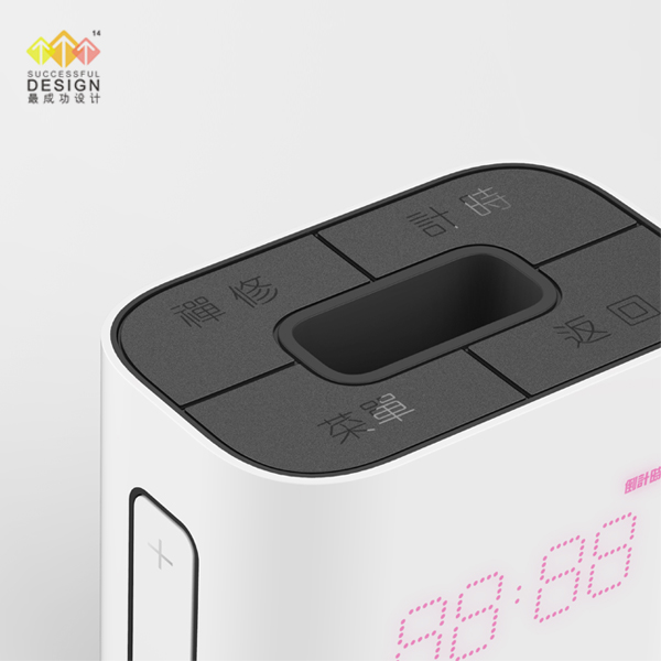 正念禅修闹钟是为佛教徒设计的产品,将佛教的教义“空”运用到产品中,声音由产品的内空腔发出,体现了佛教徒“内观”的性格。这次的禅院闹钟设计,是在原有产品设计的基础上,增加了佛教文化,不再是单一的产品设计,更是一次文化设计。