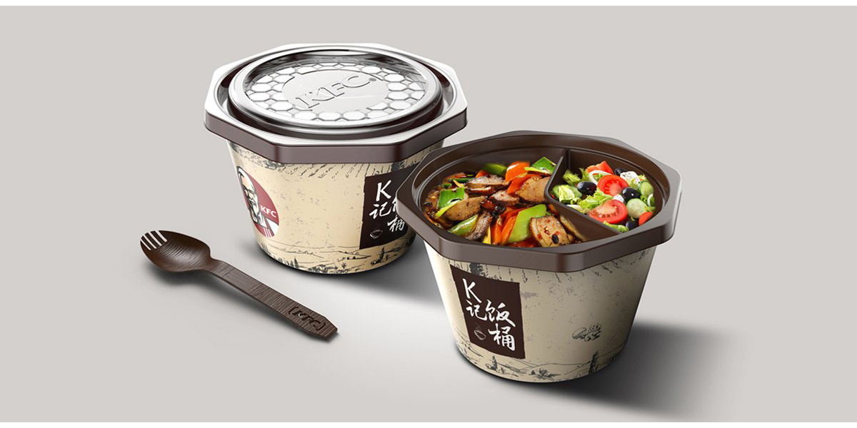 我们选择八角形作为桶身的主要造型语言,在中国文化中,八角形态代表着合家欢乐、团圆美满、坚实可靠,这与肯德基期待的产品情感诉求相一致。从工程上来说,八角形非常稳固,符合餐盒的强度标准,同时八角的形态也方便消费者拿取餐盘。