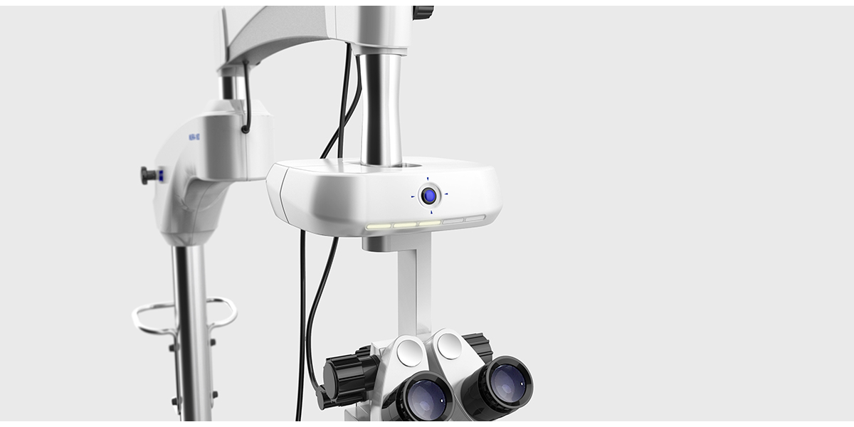 设计师与工程师一起探讨显微镜在手术中的使用流程,发现痛点并将之合理改善。通过在显微镜的头部安装指示灯光强弱的灯带,使医生在手术的过程中,可以清晰地看到灯光的明暗程度,加快手术 进度,为治疗争取更多的时间。