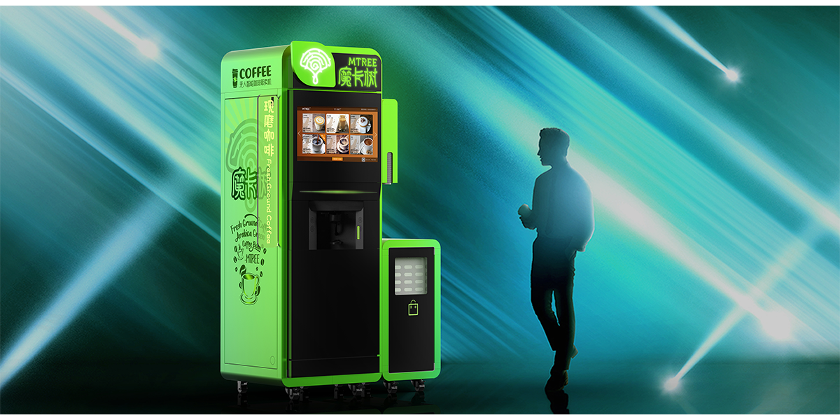 “魔卡树”无人智能咖啡机放置在医院、学校、大型商场、地铁站等人流集中的地点,其产品以优质的品质、丰富的购物体验,深得广大消费者的喜爱。侧边亚克力灯板透出的绿色提高了产品的辨识度和科技感,四周环绕的造型语言为用户带来可靠性与呵护感。