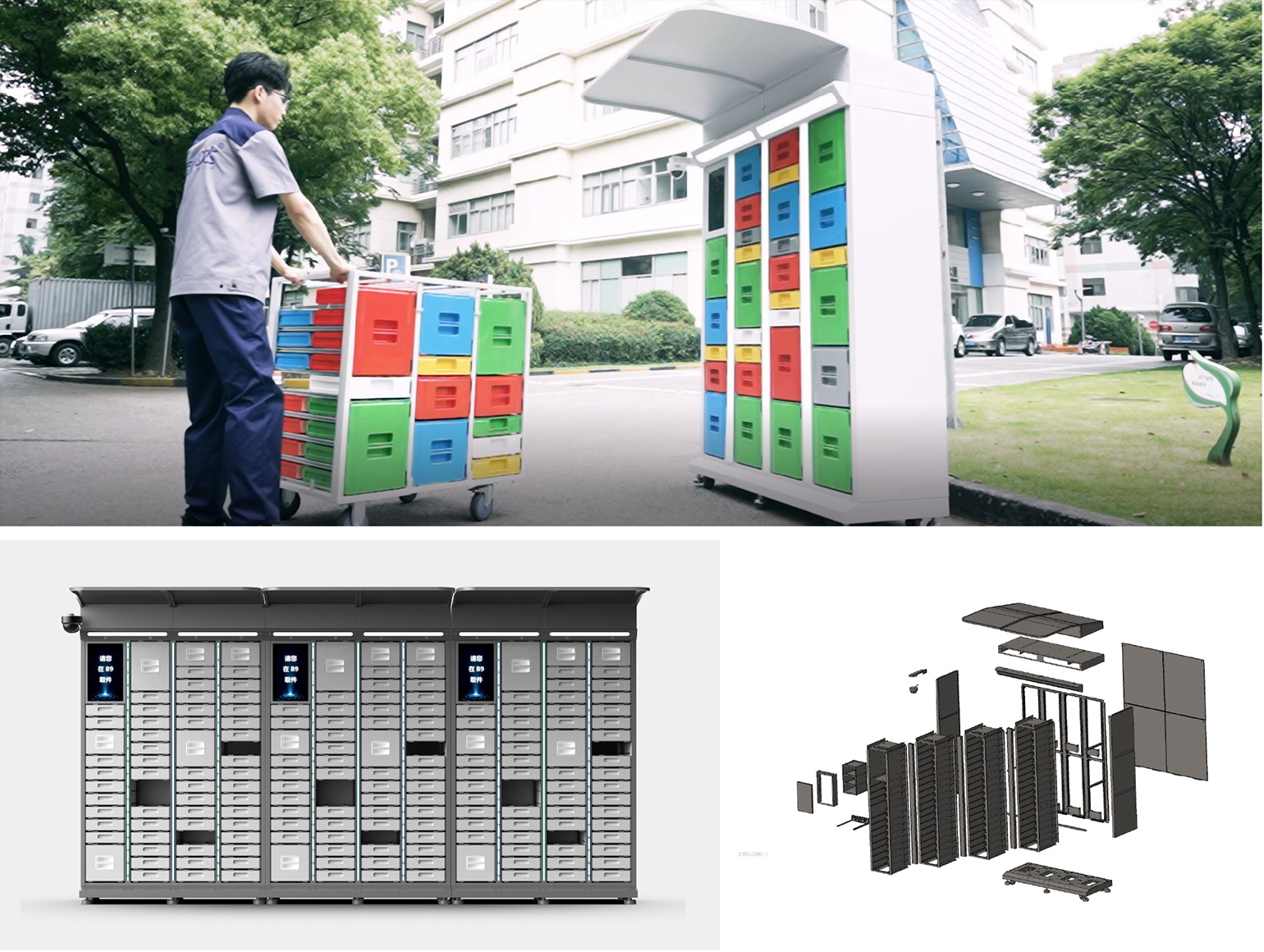 宜箱快递系统配备了多种规格、可复用的快递箱,每只快递箱均内置控制电路和RFID芯片,结合自主研发的物流信息管理系统、自动装卸设备、派送架等,重塑了传统物流快递业务型态。通过将不同尺寸规格的快递箱,将所有货物尺寸结构化、信息可视化,减少了40%的货物流转时间。宜箱快递物流系统提升了快递小哥的投递覆盖半径和投递效率,同时完全杜绝了瓦楞纸箱和胶带的使用,是新一代环保物流解决方案