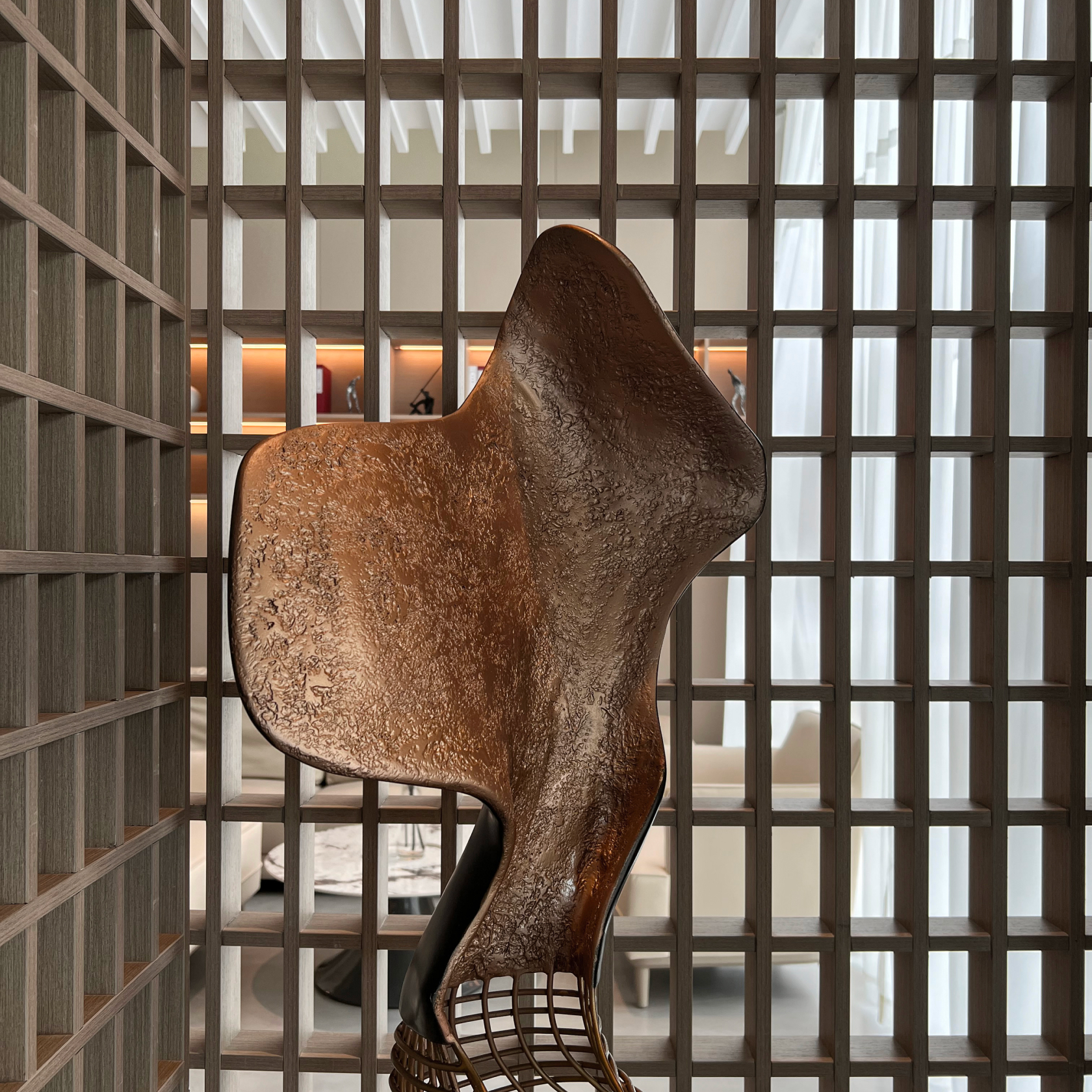 秉承简而素的设计理念,本案贯穿着东方隐秘的元素与意境,主要强调了设计的当代性,而隐去了传统中式里的繁琐沉重之物。利用线条之美,使其空间既有当代的严谨规律性,又不失东方元素中的独特气韵。加上绿植枯枝的点缀,组成一个宁静清雅的空间。