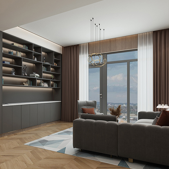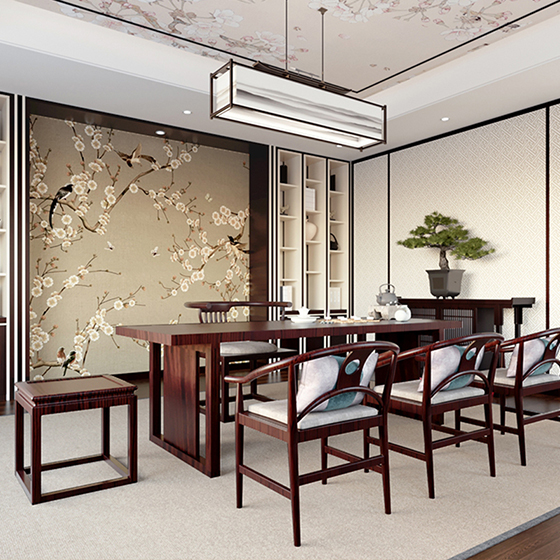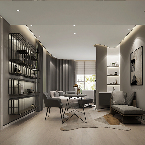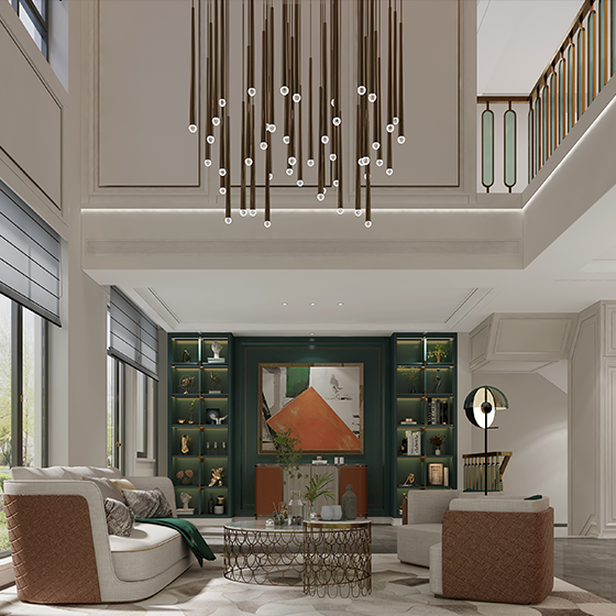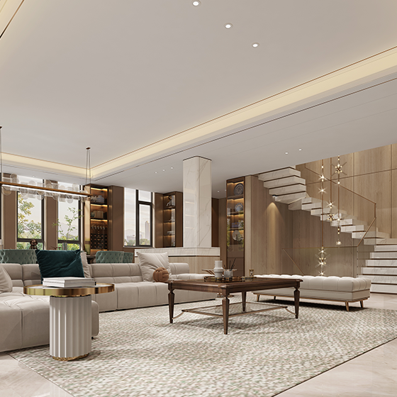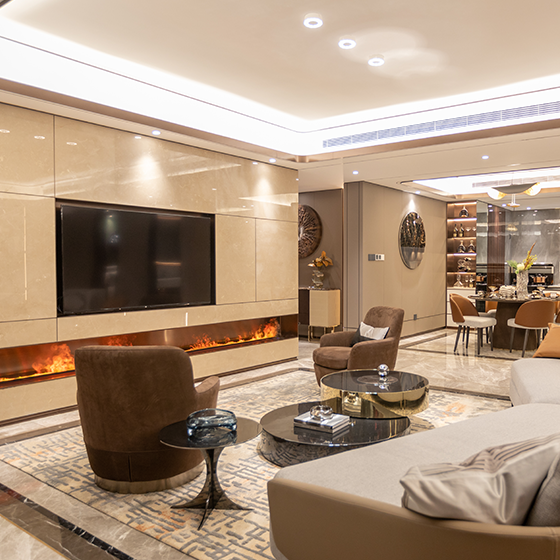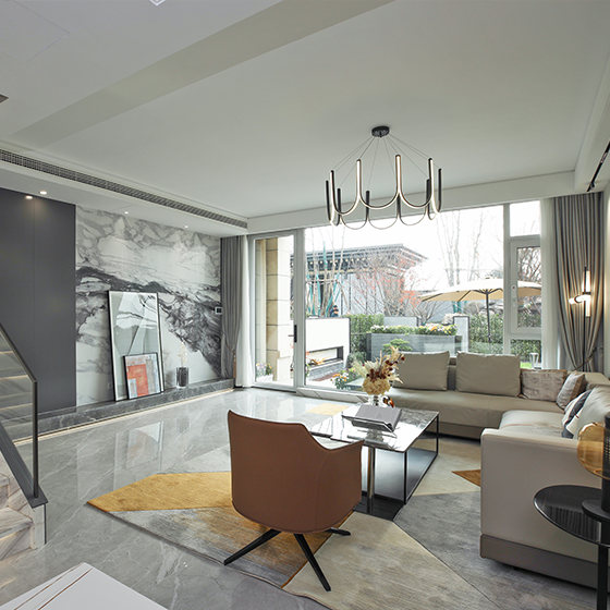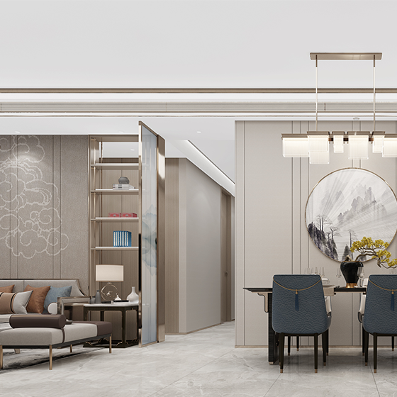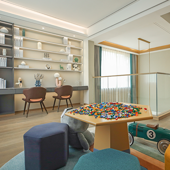 本案楼盘采用新亚洲建筑风格,因此在设计本案样板间时注重与楼盘风格定位相融合,客餐厅采用一体化设计,同时将阔绰庭院景色纳景色入户,还专门设计了亲子空间,承载父母与孩子的天伦之乐,整个空间设计大气、尊贵,彰显目标客户身份定位。