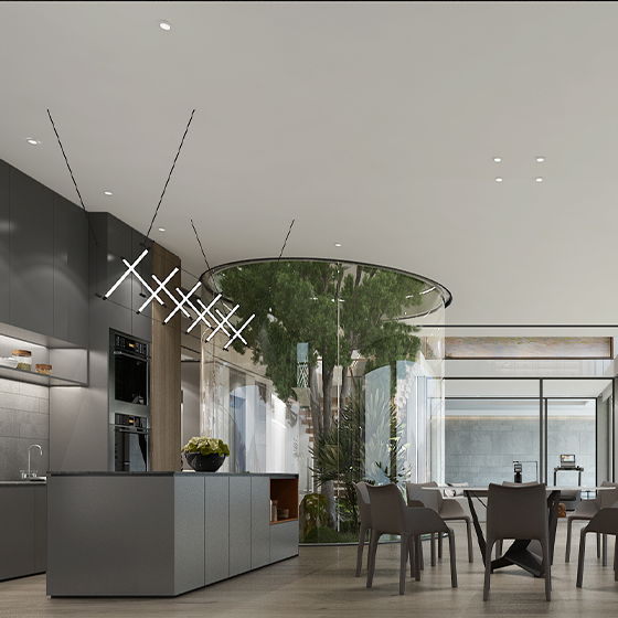 设计师基于业主的生活习惯和需求,对餐厨空间进行巧妙的规划,空间之间的开放互联不仅遵循着豪宅应有的比例尺度,融合审美情趣,也彰显了主人的品味与格调。高级灰调,抹在每个空间细节,体现在电视主墙、地面磁砖的质朴,运用艺术感的设计手法,让各个空间相互映照渗透彼…