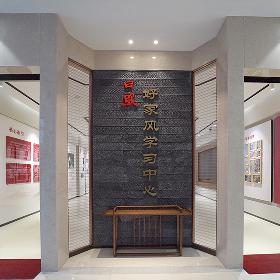 通过空间设计划分出核心指引、红色家风、时代楷模、好家风图解、日照人谈家风、家家幸福安康工程六大展示区,并创新性运用图文教育、影像教学等多种形式相结合的展陈形式,满足其作为集家风家训宣传教育的综合基地的需求。