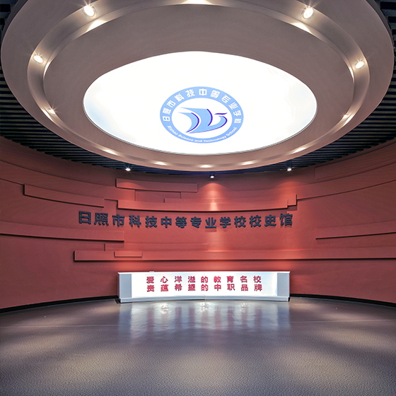 在深入了解学校的办学宗旨、校风校训和校园文化后,校史馆的设计概打破通俗的陈列室的布局,通过亮丽的主题色强化重点,加强视觉体验感,并通过灯光和多媒体技术让展示效果更立体生动打造出具有前瞻性、艺术性、科技性和富有层次感的布展风格。