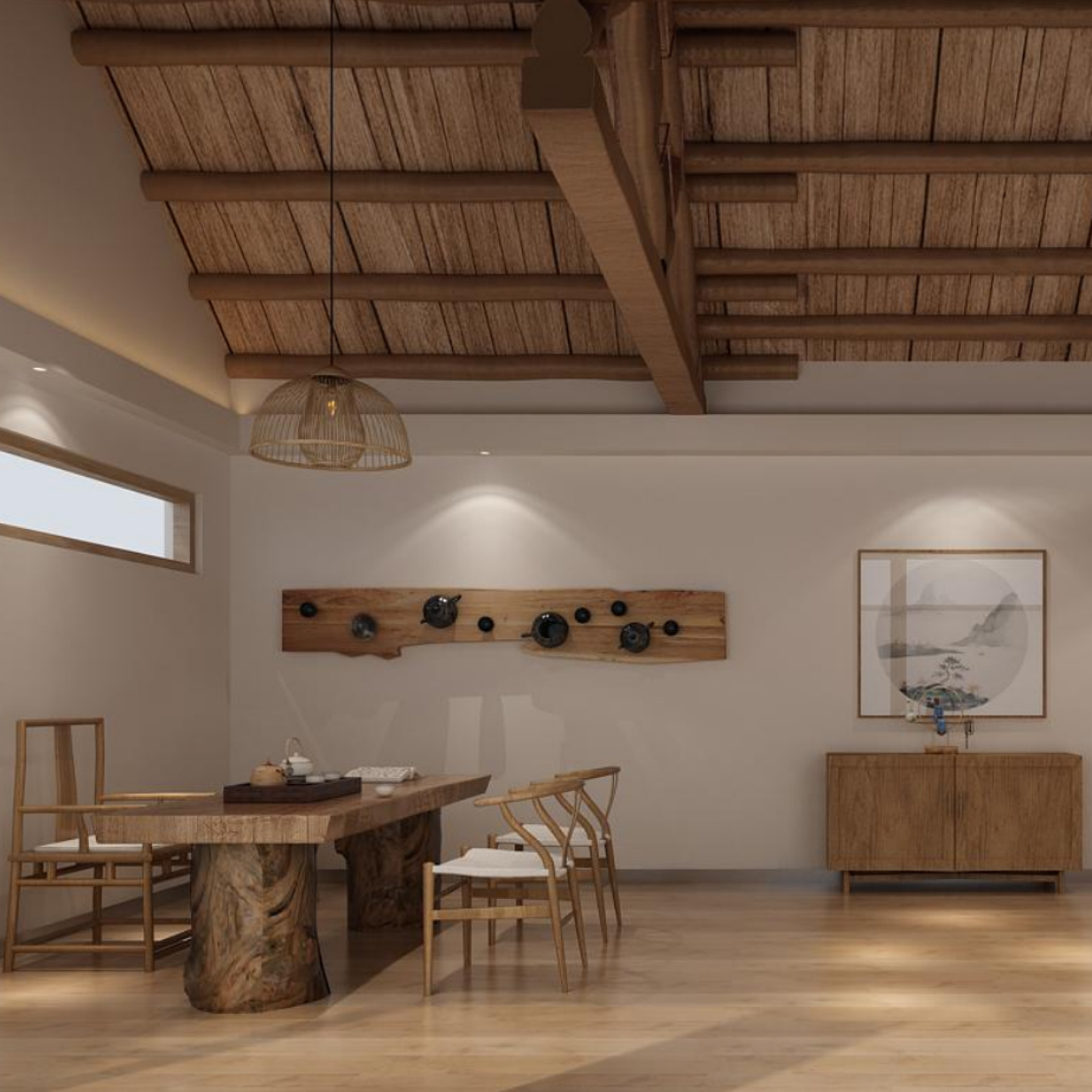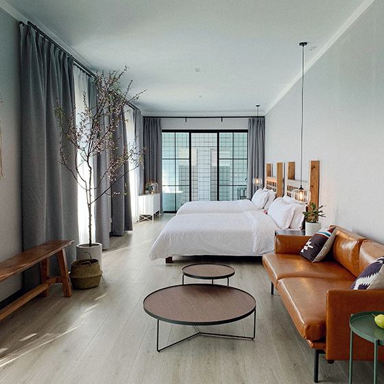 本案在注重保留老房独特韵味的前提下,同时对不满足现代生活习惯处进行加以现代化改造,在设计时还注重与当地生活环境和人文环境相结合,而艺术摆件和绿植的点缀使其更具艺术性,使其兼具居住与文化艺术的双重属性。
