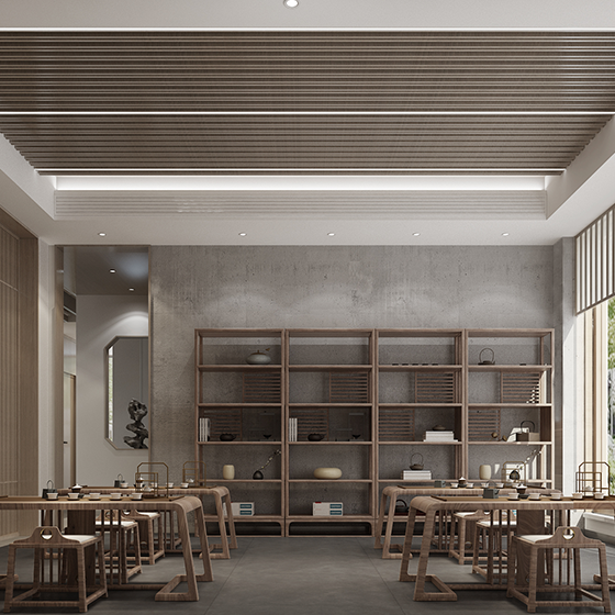 整体空间十分静谧、幽雅、洁净、舒适,产生了一种让人随遇而安的感觉。茶室追求微弱光线营造的幽暗之美,阴影有机会游离于其中。通过最简单质朴的材料和形式结合灯光的运用,让人更专注于茶汤带来的感受和优雅自如的深层次体验。