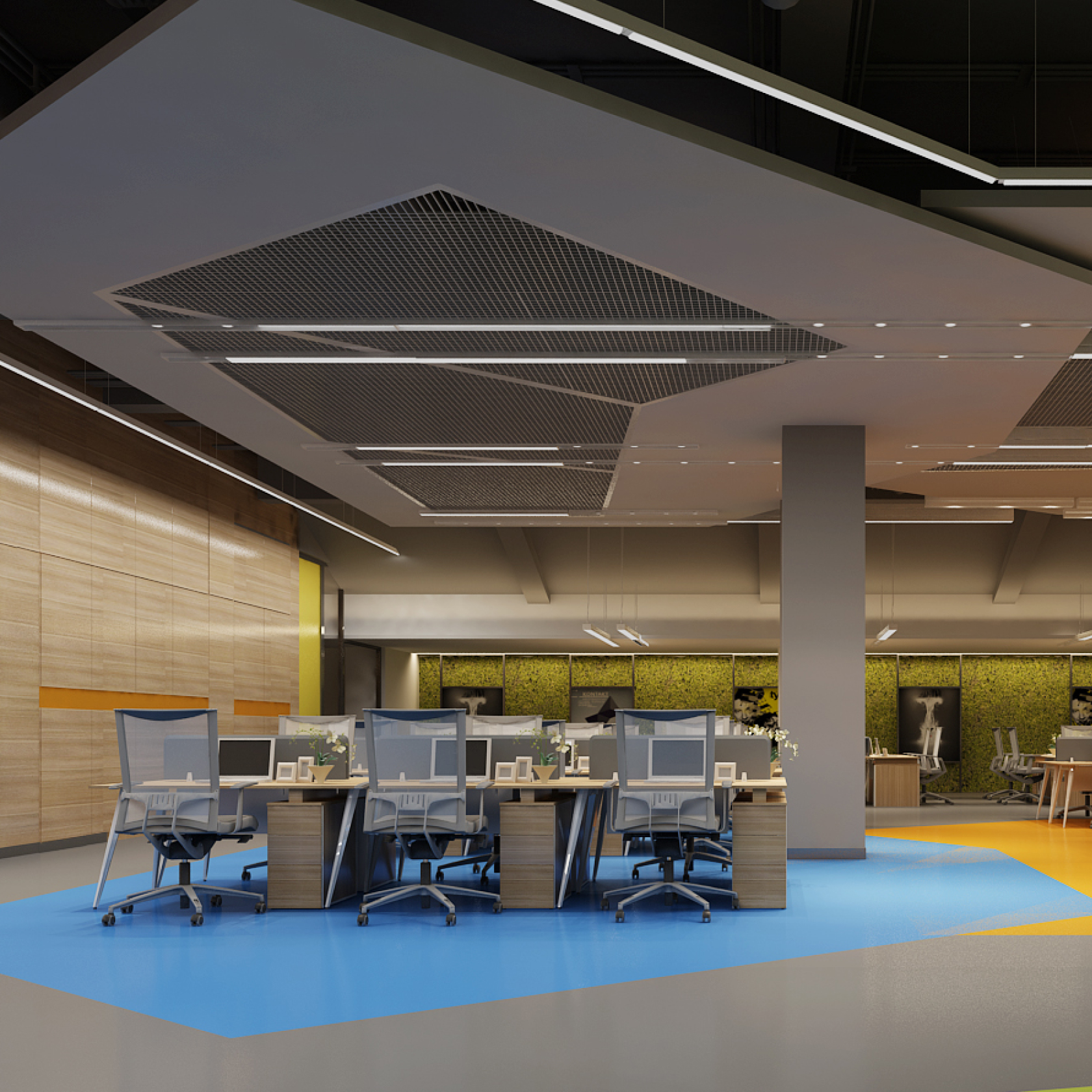 作为创业人员的协作空间,创客空间在设计时摒弃了传统办公区单调、死板的设计思路,在设计上更注重空间的开放与流动,与创客的创新、开放的精神不谋而合,营造出创意性和协作性相结合的工作空间。