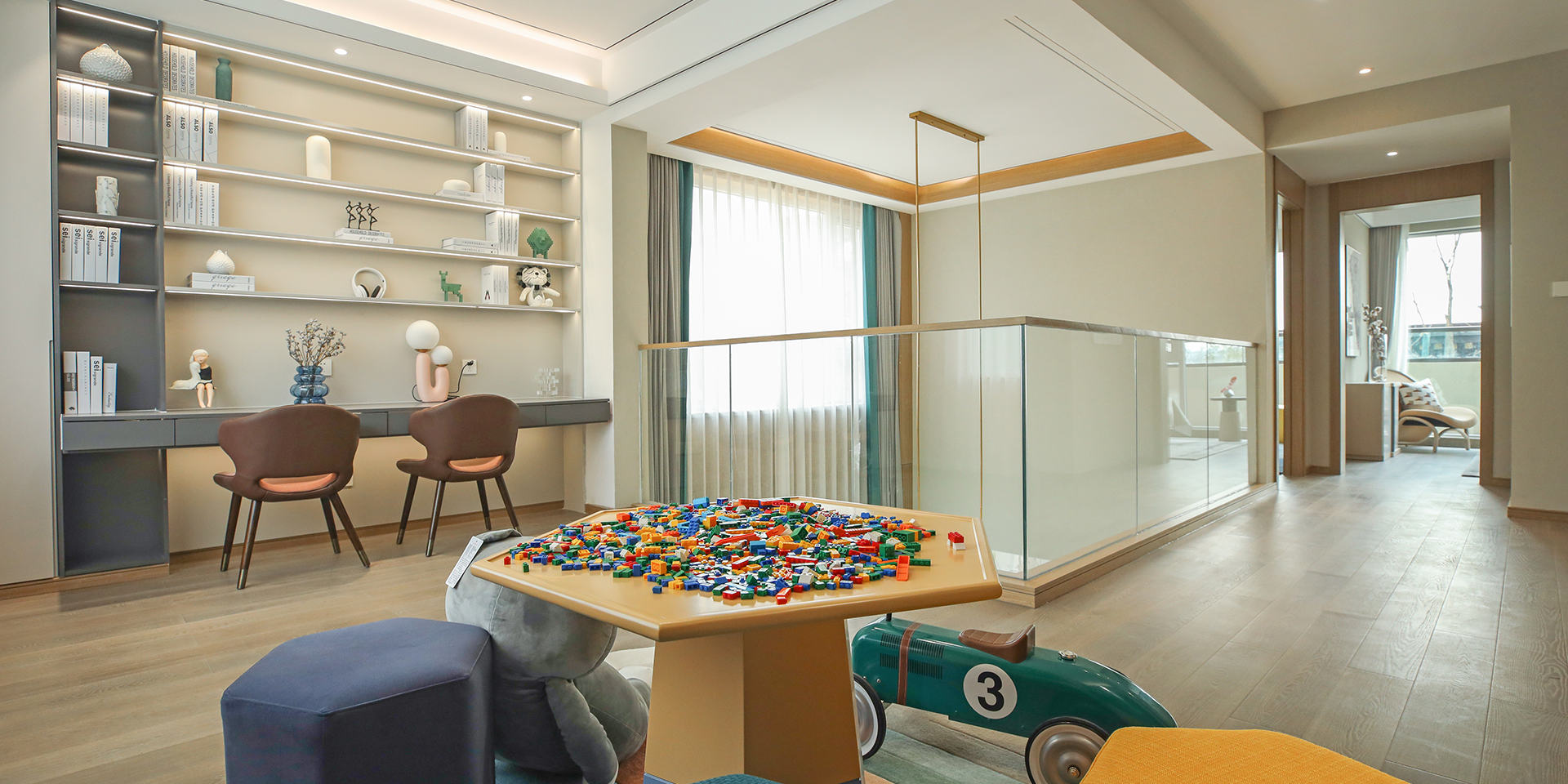客厅的设计带出细腻的新东方显学,以现代手法布局空间。山水相逢,墨色入织,壁面上山水画,应和整体空间风格。大厅一面以帘幕带出透光,另一面以不规则格栅装置划静谧隐私空间,以现代骨干构筑合宜呈现。山水错落有相逢,琳琅满目有闲情。丰富的东方装饰性,雅致了整个空…