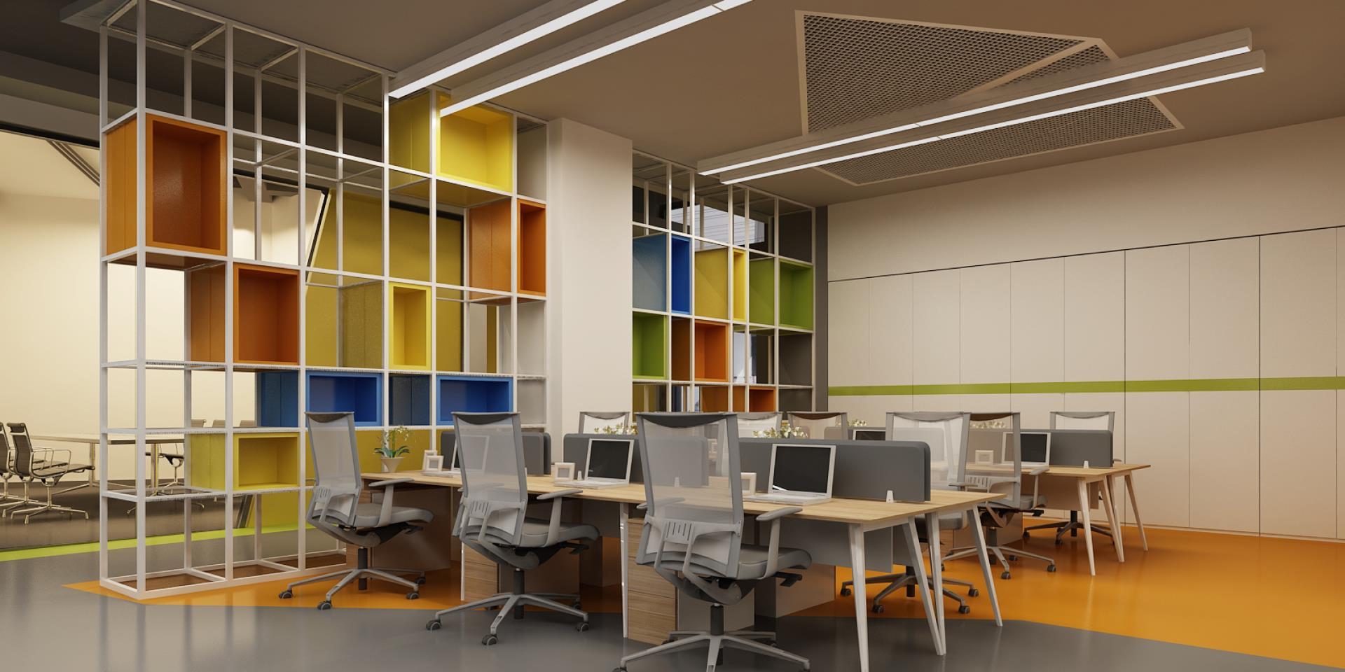 作为创业人员的协作空间,创客空间在设计时摒弃了传统办公区单调、死板的设计思路,在设计上更注重空间的开放与流动,与创客的创新、开放的精神不谋而合,营造出创意性和协作性相结合的工作空间。