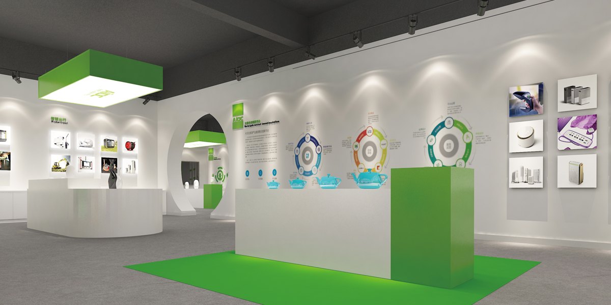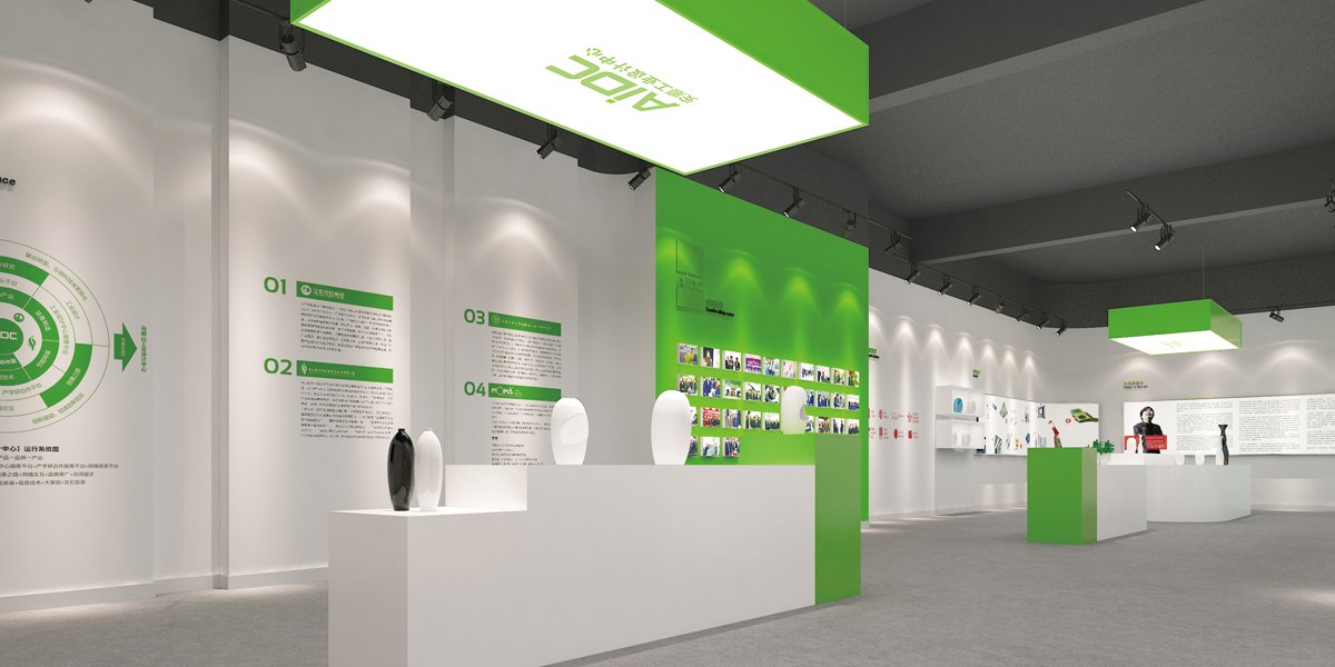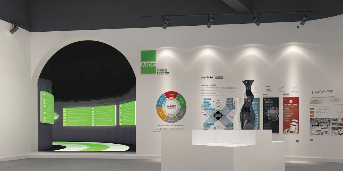 展厅功能区划分为人工智能、智慧城市、生活美学、文创IP、医疗健康、装备制造六大产业设计核心板块,以品牌主色色块分割串联整个展示空间,使动线及路径更加生动明晰。