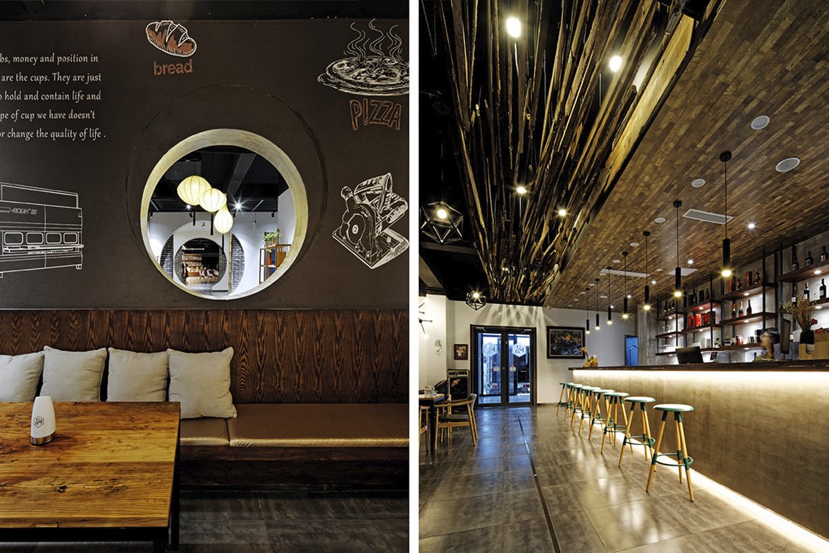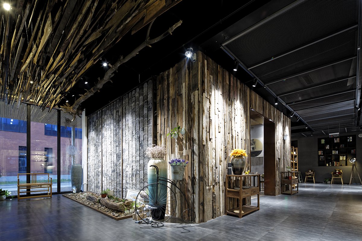 咖啡馆空间利用了较多天然的材质和简单错落的形式,成就纯粹的空间氛围,使空间产生生长的自然张力。设计中不刻意追求材料的豪华和变化,着重几种特定材质的相互穿插运用,以形成空间的有机和丰富。