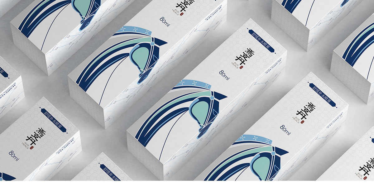 本方案中抓住产品主打成分“马油”的视觉载体“马”,将西北地理特征与历史图纹融入马头设计中,丰富产品内涵。在系列产品色彩上中针对产品特性运用了冰川蓝与沙丘棕来对应喷雾与马油产品,体现喷雾补水舒缓与马油产品滋润保湿的特点,打造西北视觉品牌。