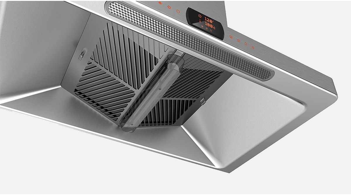 本案采用一体化的设计理念,针对燃气灶与油烟机的产品特色,在同一平台框架下进行了系统化设计。创新的平板化一体式设计,既保证吸烟效率,也增强了产品家族感。独特的圆角造型元素,有效保障了用户的使用安全。