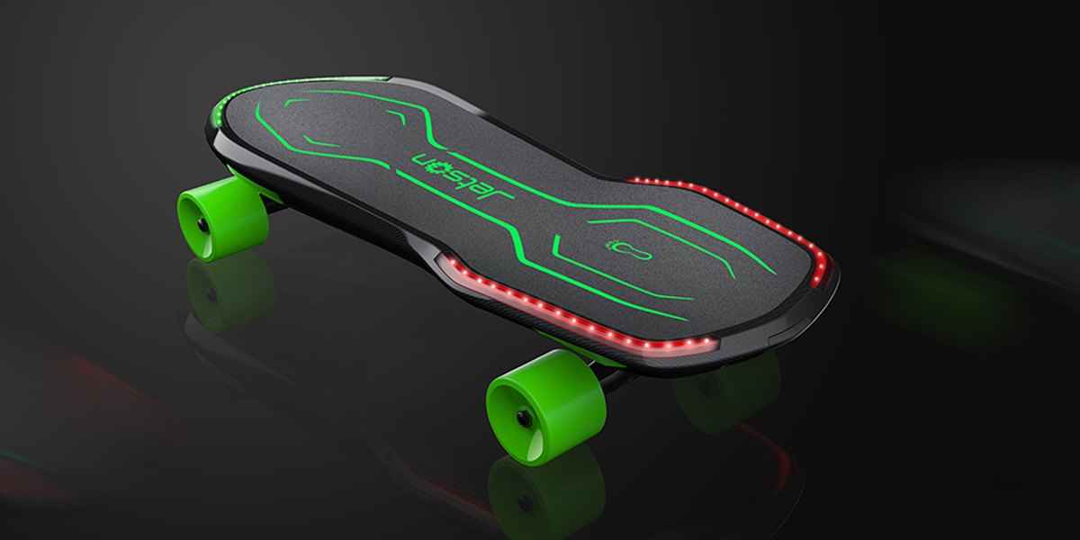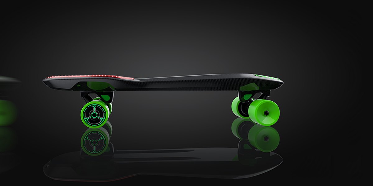 这是一款针对热爱运动的年轻人设计的新一代四轮滑板,前后车灯与滑板融为一体,并且具备刹车提醒、电量提等功能,夜间驾驶时绚丽夺目,极具个性。产品轻巧可靠,易于携带,能够充当一般的短途代步工具,适用于更广大的普通用户。