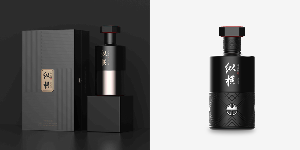 瓶身采用瓶形中最经典的圆柱形状,大气耐看,并通过材质分割的形式形成其特有气质,与传统酒瓶相比更有现代感。盖子的设计灵感来源于夏商周的鼎器文化,通过八边形切边,搭配青铜酒器常用的回形纹,塑造宝鼎形象,呈现力量感和权威感。