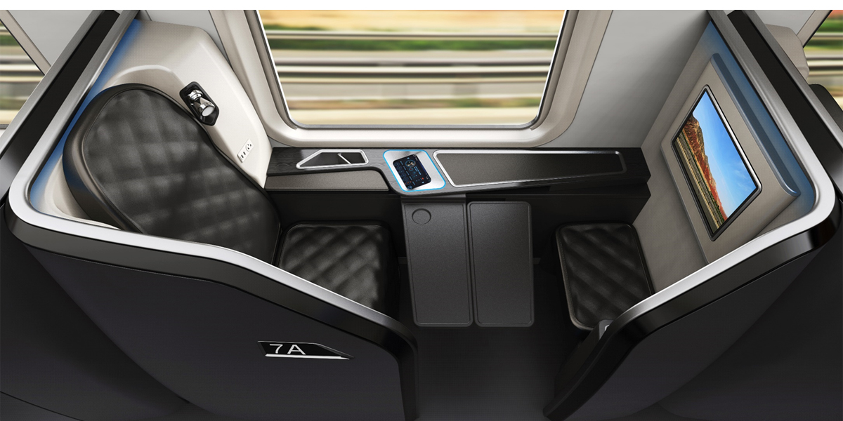 随着高铁的迅速普及,舒适、安全成为高铁新的发展方向。经过大量的市场调研,我们把从检票上车、入座、用餐到最后下车之间的每一步都列为研究对象。在确保内饰造型的整体和色彩搭配的舒适的同时,便捷的功能以及巧妙的布局与规划,是整个头等舱规划的核心。