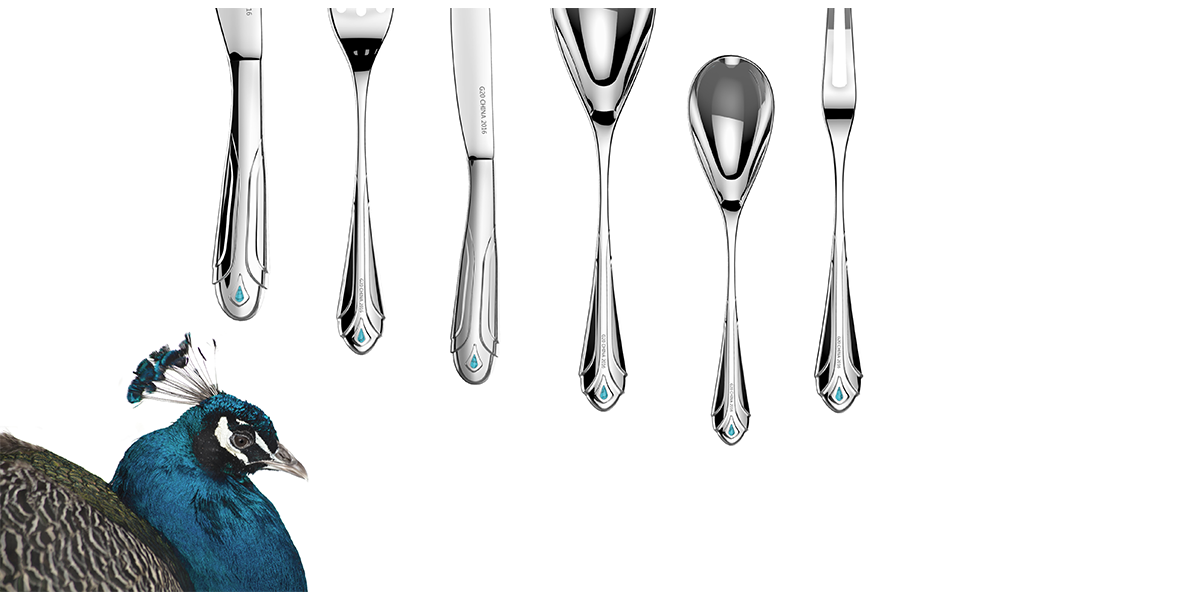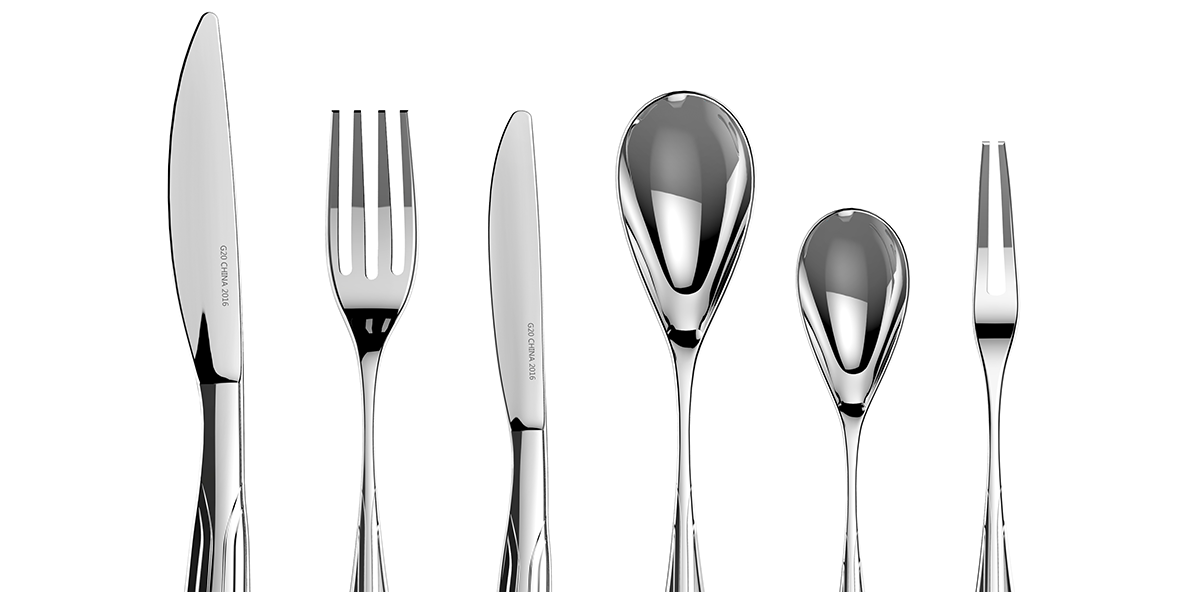 木马为G20峰会国宴设计系列餐具。设计提炼了东方经典元素,将古代传统云纹、饕餮纹、鸟雀羽翼等纳入设计中。最终以孔雀雀羽的形态为主体设计元素。设计体现了中华传统智慧中的礼制与形式间的微妙渗透,并寓意着吉祥幸福。