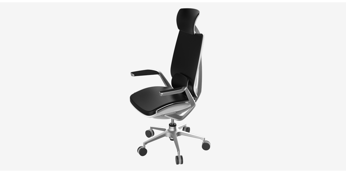 这款办公椅提取了当今流行的概念车中的造型语言,流畅婉转的曲面过度中仍不失正气和力量感。光亮的ABS与磨砂的铝合金形成了鲜明的材质对比,给人以活力十足之感。