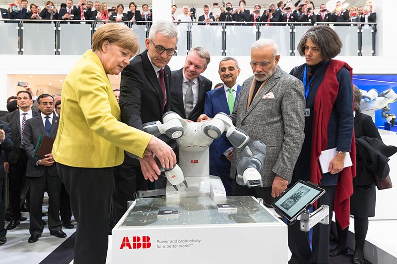 德国总理默克尔握手木马设计参与开发的ABB机器人YUMI