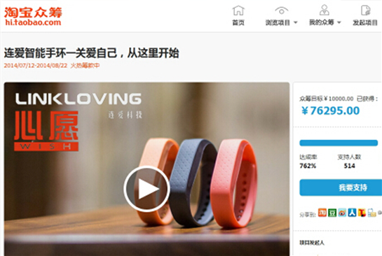 【欧冠(中国)】木马设计连爱智能手环淘宝众筹上线两天,销售额突破70000元!