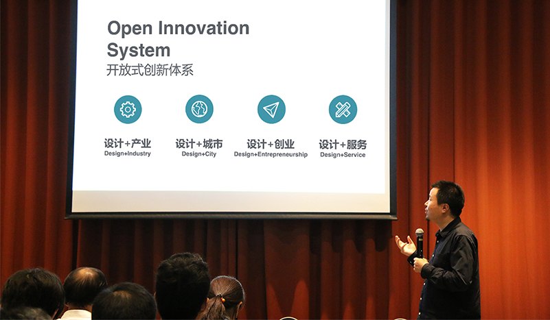 ▲木马设计总经理丁伟先生进行了题为“开放式创新”的主题演讲,与我们分享今天的设计如何通过开放式创新撬动产业、服务、创业和城市的多方变革。