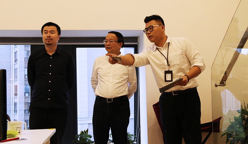 ▲上海工业设计协会会长王日华先生、明杏谷优创总经理宋奇峰、欧冠网址总经理丁伟等领导和嘉宾为孵化基地揭牌。