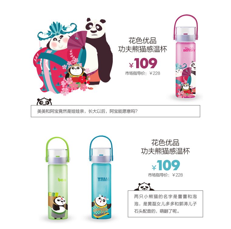 花色优品——珍藏版全家福功夫熊猫玻璃感温杯系列设计