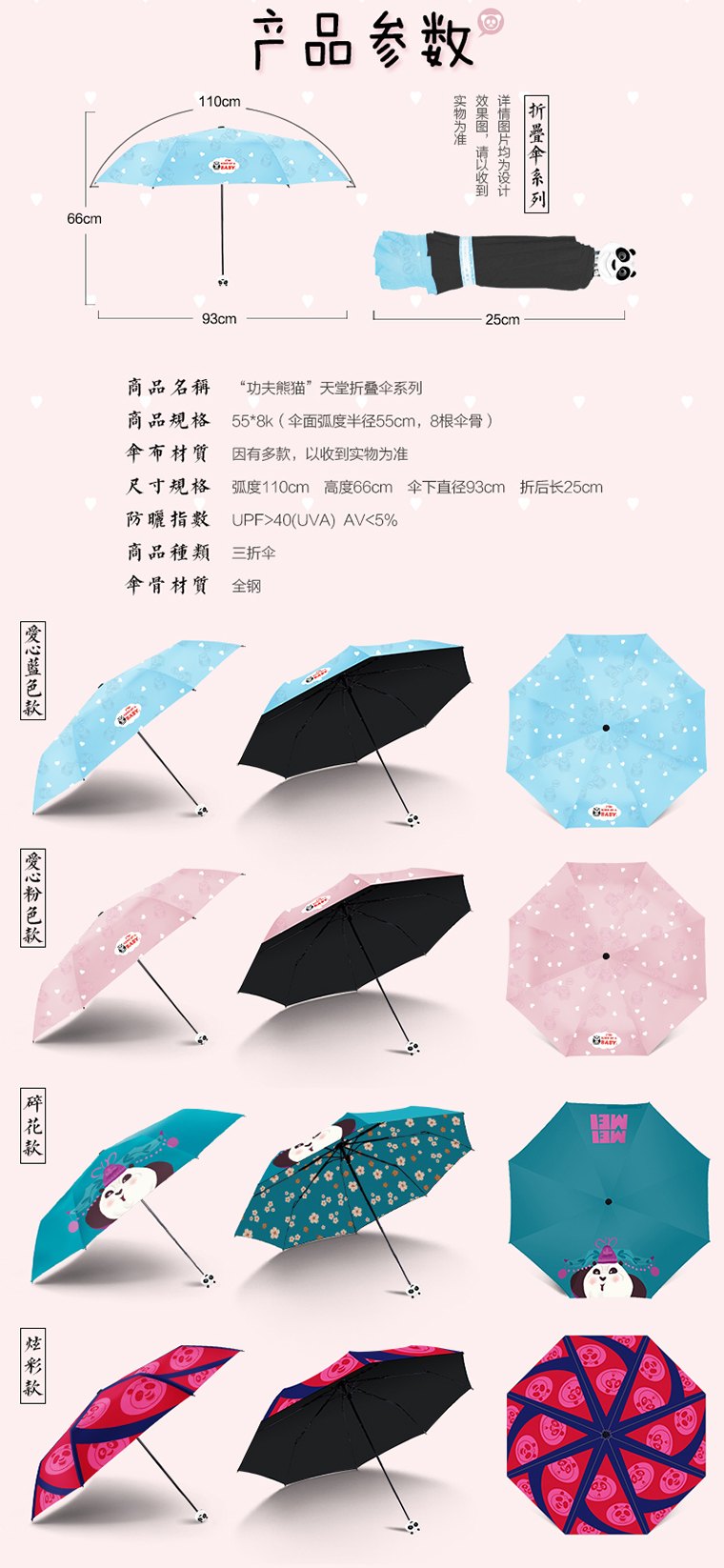 功夫熊猫3 正版授权 天堂伞多款晴雨伞 向梦想致敬——功夫熊猫3官方正版授权,功夫熊猫系列之【折叠碎花款】天堂伞功夫熊猫折叠伞
