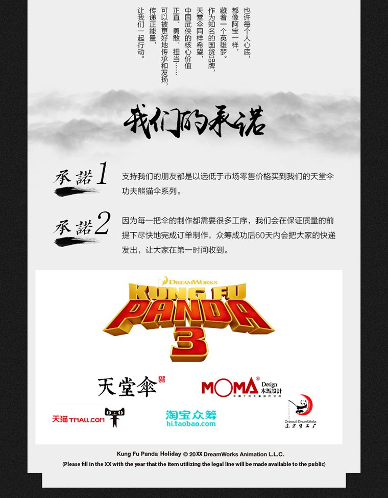 《功夫熊猫3》是《功夫熊猫》系列的第三部电影,该片将于2016年1月29日在中国和北美地区首映。于此同时,在淘宝众筹以及手机淘宝各大页面上,一大波功夫熊猫系列的衍生产品也拉开了众筹销售的序幕。