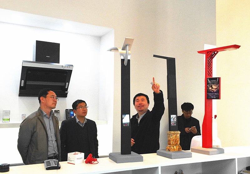 2015年4月17日上午,山东省日照市开发区领导一行视察木马设计,集团创始人丁伟先生向领导集中展示了普罗娜(PRONA)智慧照明路灯系列以及木马设计参与开发的ABB机器人YUMI等新创新产品。开发区领导对木马设计的前沿产品产生了浓厚兴趣并给予了高度评价。
