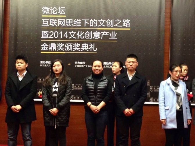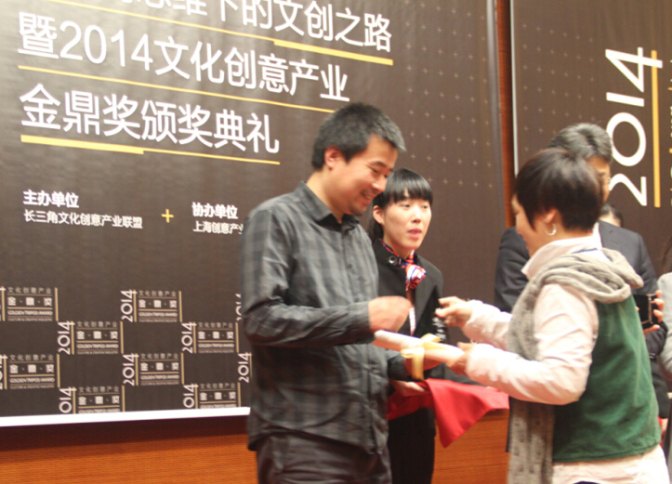 木马设计品牌总监陈蓉蓉上台领取“2014文化产业金鼎奖最佳产品设计奖”。