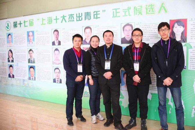 受到“十大杰出青年”提名奖的十位优秀青年们(左三为丁伟先生)