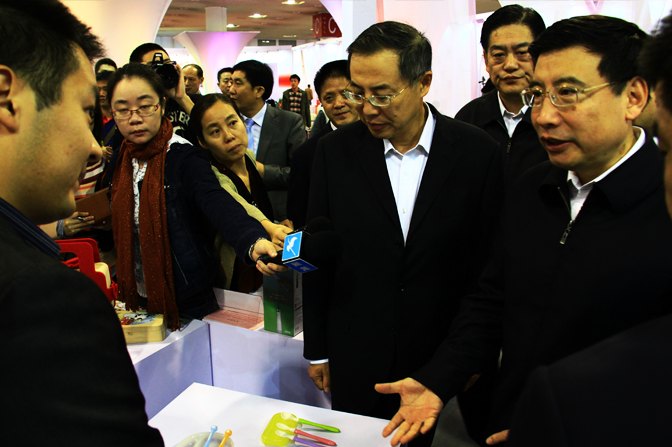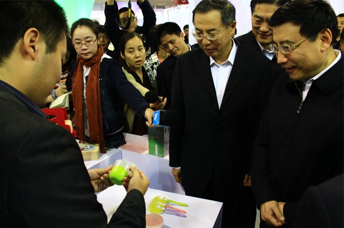 苗圩部长饶有兴致地观看了参赛展品,特别在木马展台前驻足欣赏,认真听取了木马主管顾闻对产品的讲解。对木马所设计的贝亲儿童餐具很感兴趣,还特地认真地询问此产品的设计概念和材料属性,并谈到儿童是祖国的未来,给儿童使用的产品一定要是健康安全,容不得半点马虎。