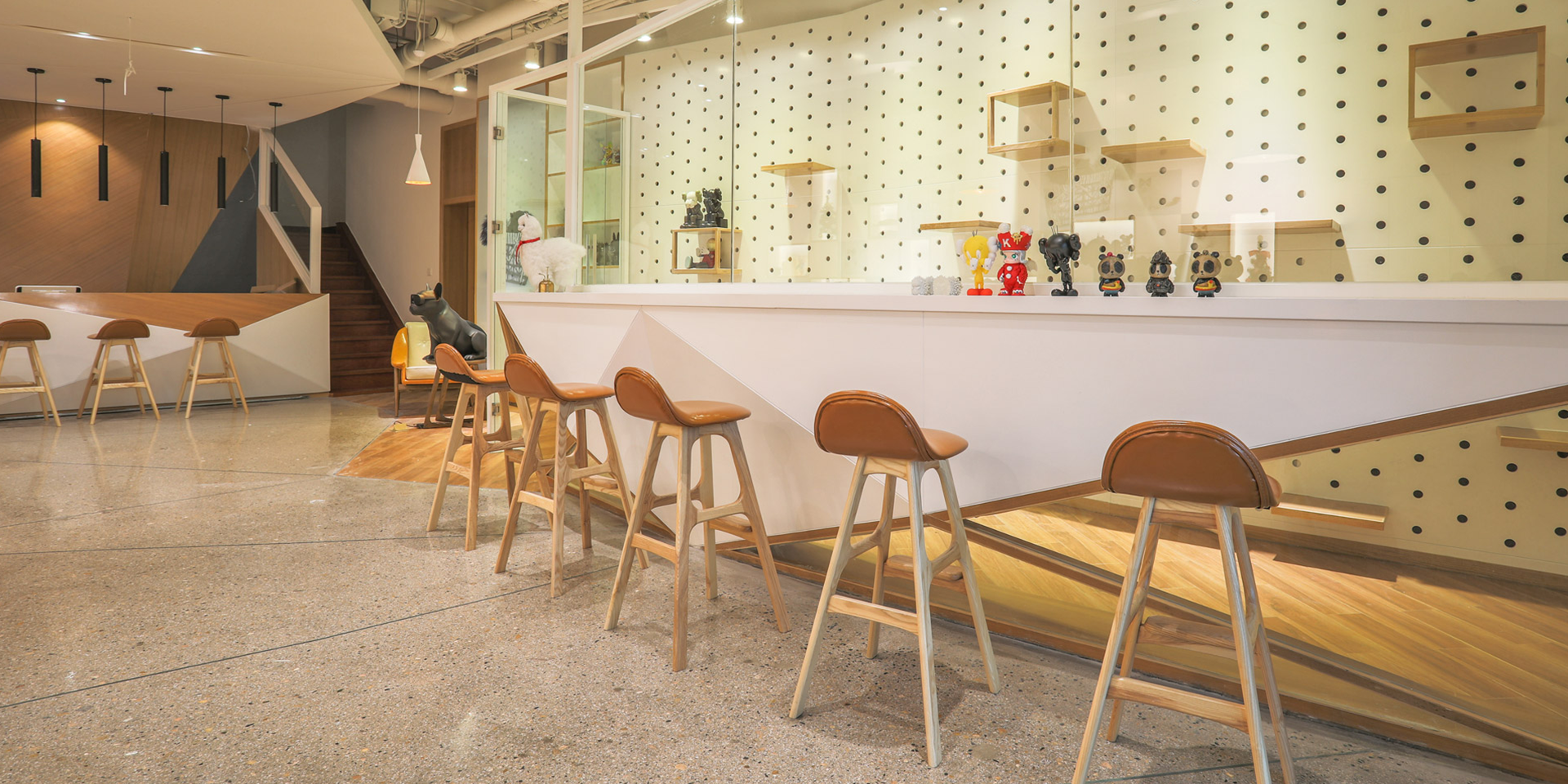 设计整体采用暖色调,木地板与地砖混搭,并用宠物玩偶摆件进行艺术点缀,在设计之初充分考虑宠物习性和人方便需求,层次丰富,打造人与宠物和谐共处的生活空间。