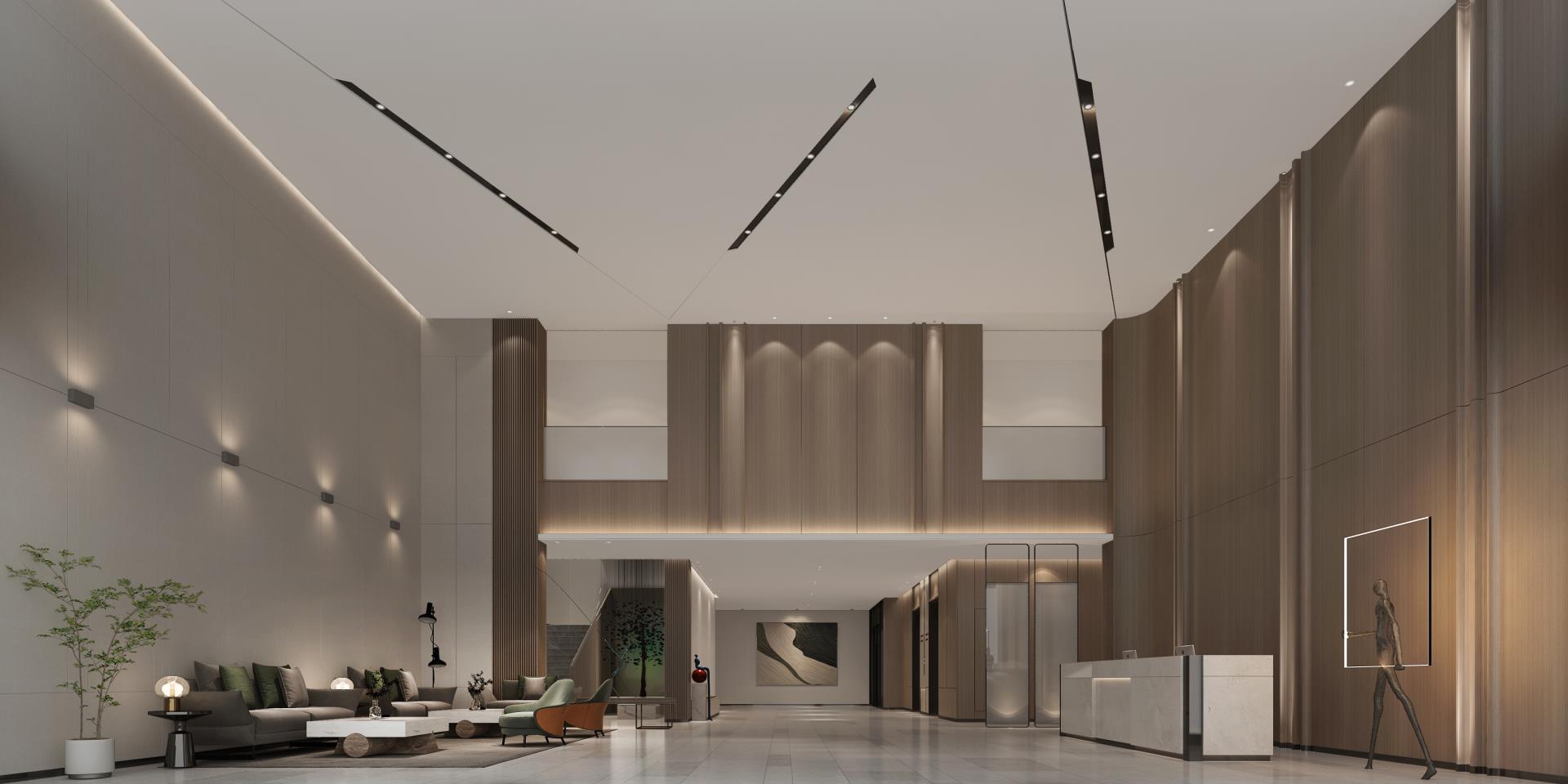 设计师以现代前卫的设计手法让酒店空间开阔、干净、有序,而几何线条的顶灯和对称设计的射灯让整体空间多出自由、活泼的感觉,版画、切片装饰画、艺术摆件和绿植很好的弱化了现代风冷硬的氛围,打造出有活力的室内空间。
